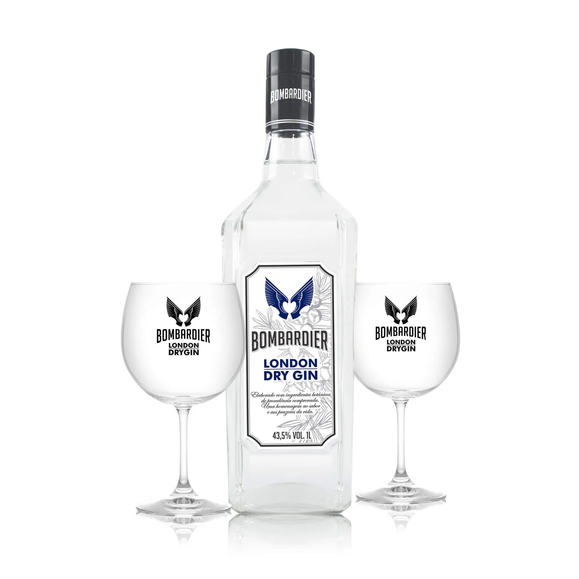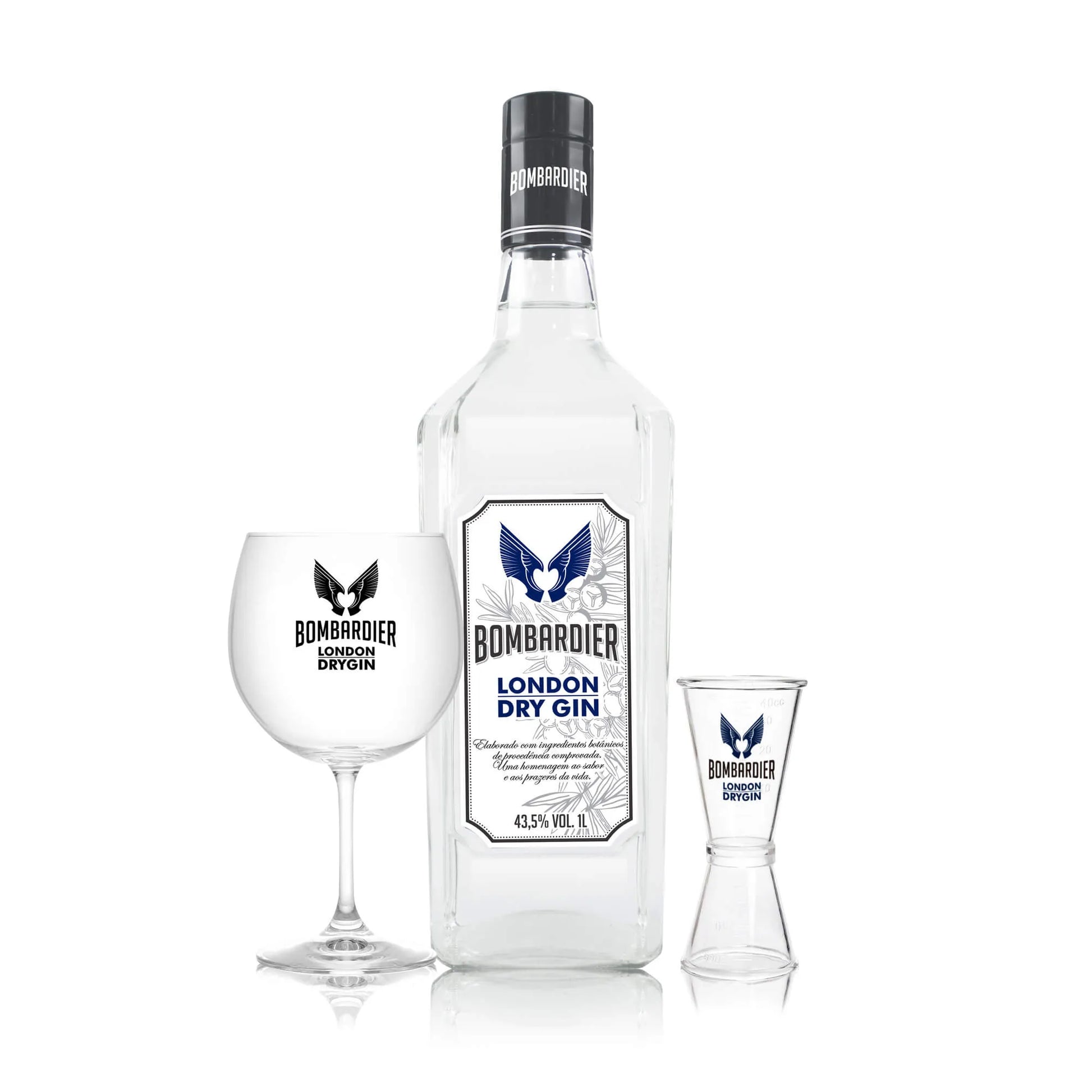 Seja quem você quiser ser. Brinde a liberdade de criar seu mundo! Montamos um kit especial com seu London Dry Gin Bombardier, uma linda taça de vidro do modelo Balloon 550ml e um dosador duplo (25 e 50ml) estilo ampulheta. Perfeito para brindar seu melhor!